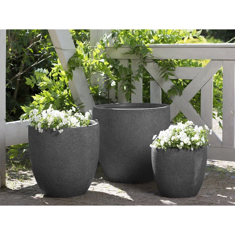 Stijlvolle, ronde plantenbakken in donkergrijs, set van 3. Bloempot in een klassieke ronde vorm en een neutrale kleur die mooi uitkomt bij elk reeds aanwezige indoor of outdoor inrichting. Uit een slijtvast en UV-bestendig mengsel van klei en glasvezel, dat bestand is tegen hoge en lage temperaturen. Stijlvolle en gemakkelijk te reinigen toevoeging aan een balkon, patio of veranda.
