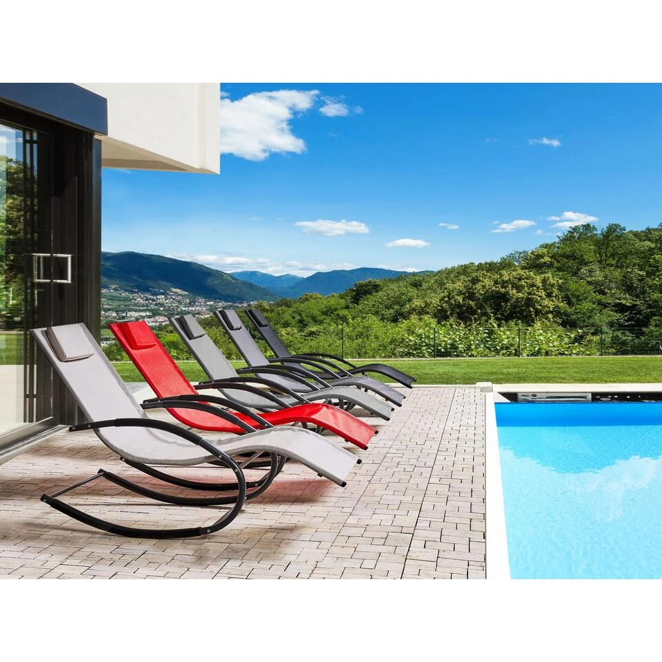 Beliani Tuinligstoel CARANO II – Beige Staal, Textiel