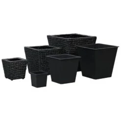 VidaXL Plantenbak Verhoogd Met 4 Potten 2 St Poly Rattan Zwart