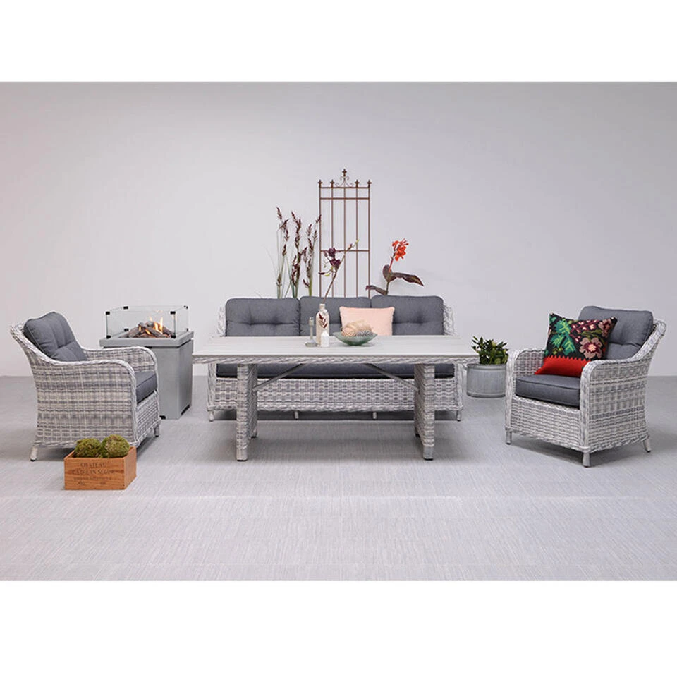 In de Nova lounge dining 3-zits bank kun je heerlijk wegdromen. Deze ruime en comfortabele bank beschikt over een hoge rugleuning en wordt geleverd compleet inclusief dikke zit- en rugkussens. De Nova driezits bank is een comfortabele lounge dining bank. Dit betekent dat de bank gebruikt kan worden om heerlijk in te loungen, maar gecombineerd met een lounge dining tafel behoort eten ook tot de mogelijkheden.