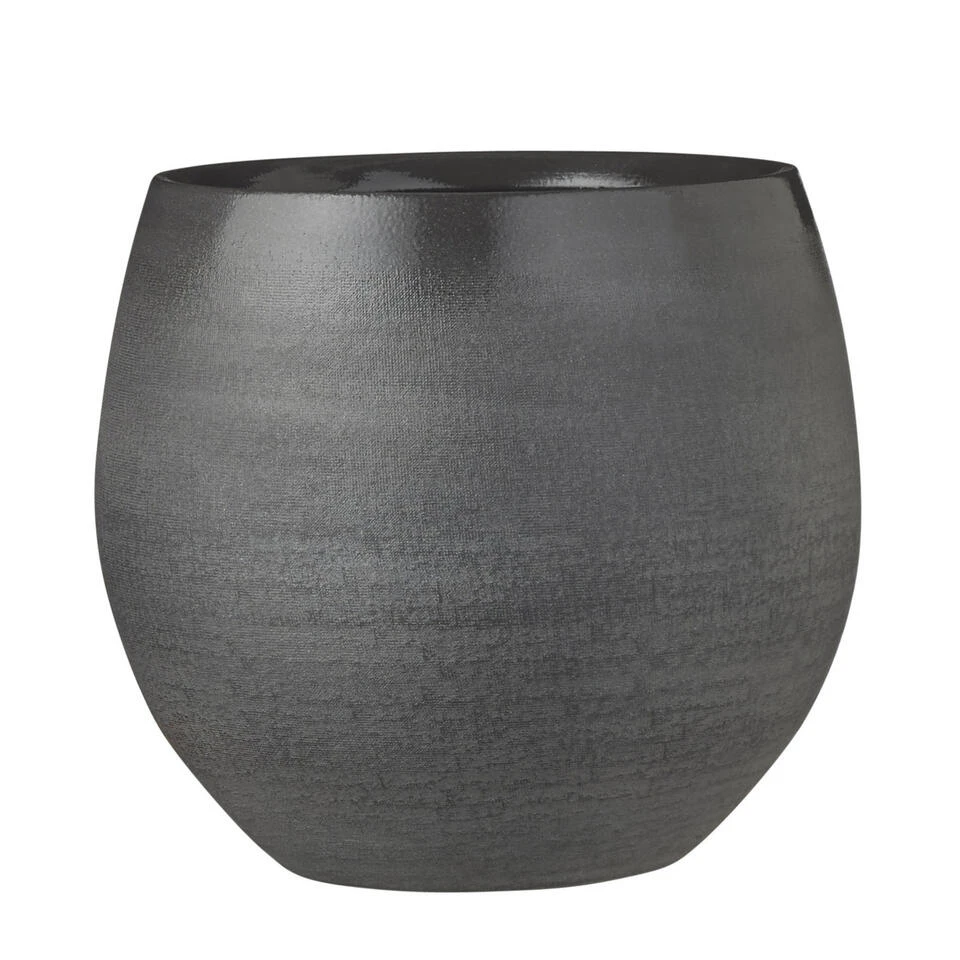 Bloempot in de kleur grijs in een mooi glans motief keramiek voor een kamerplant H20 x D23 cm. Deze ronde bloempot uit de Douro serie met schitterende afwerking is een verrijking voor uw interieur. Gemaakt van terracotta/keramiek. Diameter: 23 cm. Hoogte: 20 cm.