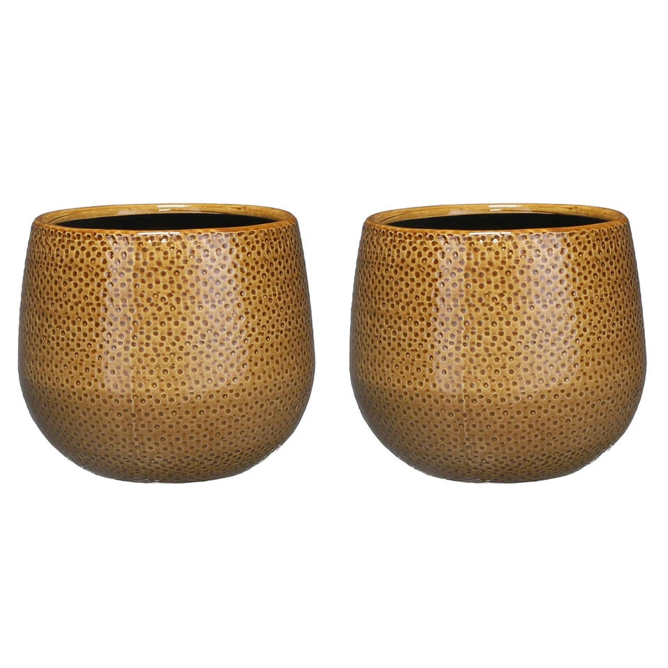 Mica Decorations Bloempot – Keramiek – Ribbel – Okergeel – 14 X 16 Cm