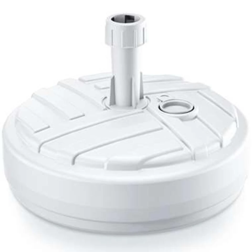 1x Stuks ronde kunststof parasolvoeten wit 10 liter. Formaat: diameter: ca 39 cm. Hoogte: ca 13 cm. Aantal liters: 10. Materiaal: kunststof.