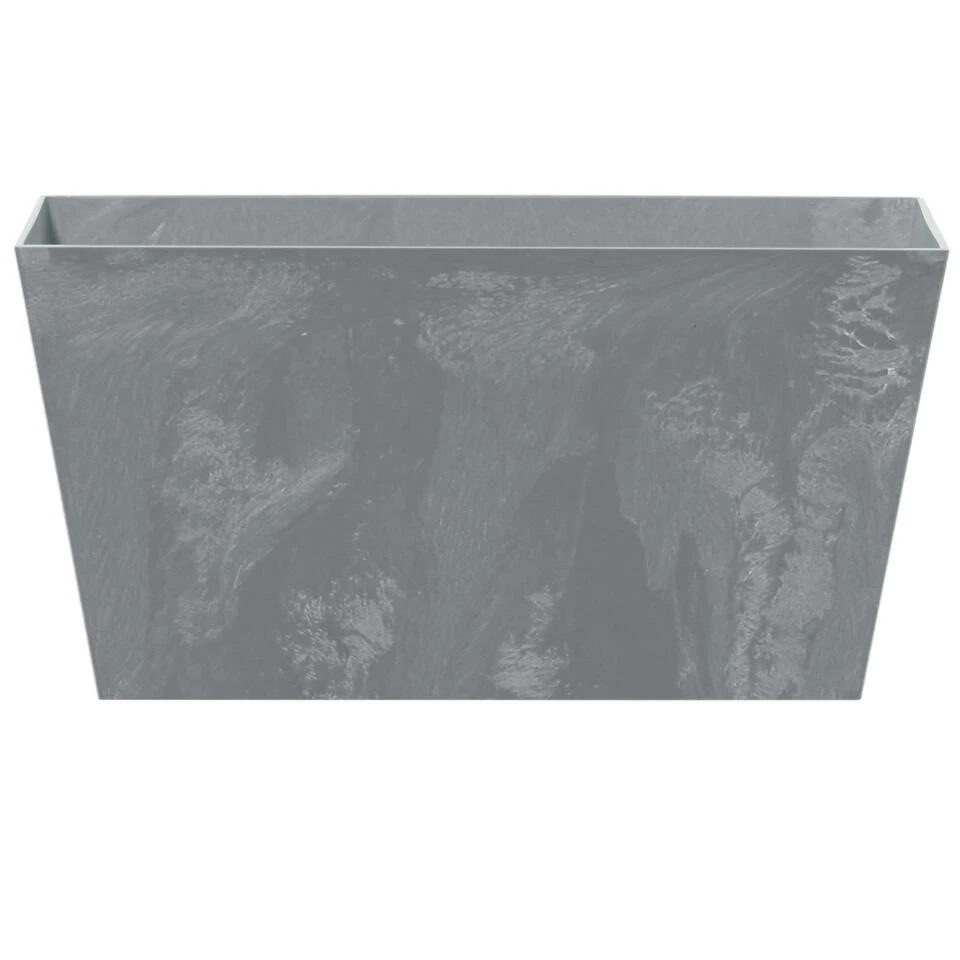 Kunststof bloembakken/plantenbakken rechthoek betonlook grijs. De bloembak loopt taps naar beneden. Afmetingen: bovenkant: ca. 60 x 32,5 x 30 cm. Onderkant: ca. 49 x 32,5 x 30 cm. Inhoud: ongeveer 38,6 liter. Materiaal: kunststof. De bloempotten hebben een gat in de bodem waardoor het overtollige water wegloopt. De potten zijn geschikt voor binnen en buiten gebruik.