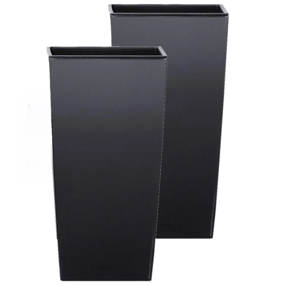Bloempot/plantenpot met binnenpot. Hoge vierkante sierlijke bloempot met een matte uitstraling. Serie: Urbi Square. Formaat: lengte: ca 19,5 cm. Breedte: ca 19,5 cm. Hoogte: ca 37,5 cm. Inhoud: 5 liter met binnenpot, 11,4 liter zonder binnenpot. Materiaal: kras en stootvast kunststof. Zonder afwateringsgaten. Geschikt voor binnen en buiten gebruik.