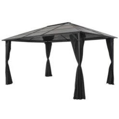 VidaXL Prieel Met Gordijn 4x3x2,6 Cm Aluminium Zwart